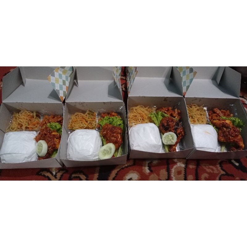 Tersedia ✓ gratis ongkir ✓ pengiriman sampai di hari . Beli paket nasi box / kotak murah ayam goreng, sambal, lalapan, taehu/tempe terbaru harga murah di shopee. Nasi putih, ayam goreng, tahu goreng, lalapan, sambal, pisang abon. Panjang 15 cm lebar 15 cm tinggi 7 cm isian : Nasi ayam tempe tahu mie lalapan sambal minimal ord. Harga masih bisa negosiasi tergantung jumlah .